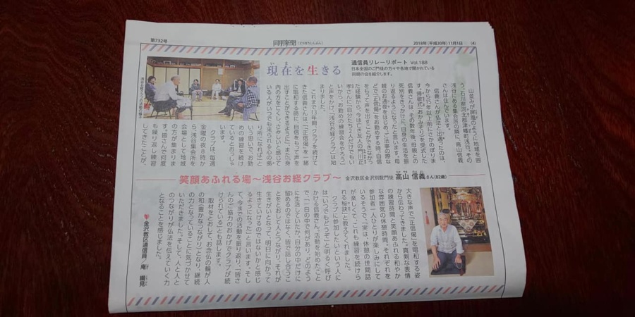 帰敬式法座 2018年12月9日/カテゴリ: 写真日記 /作成者: 設計12月9日金沢教区帰敬式法座の最終回が、津幡町浅谷地区で開催されました。 山間部にある集落は45戸あったが40年で20戸になり23歳が最年少という集落。帰敬式(おかみそり)の意味を知り良かったとか、今度受式しますとの声をいただきました。浅谷地区が同朋新聞11月号に紹介されました。 https://www.oyama-net.jp/wp/wp-content/uploads/2018/12/48275554_1166519666846707_3931208489724018688_o.jpg 640 1280 設計 https://www.oyama-net.jp/wp/wp-content/uploads/2016/08/sitelogo2.png 設計2018-12-09 18:53:082018-12-09 18:53:08帰敬式法座